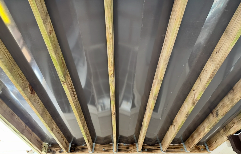 Made from pre-formed aluminum channels that keep The area underneath your deck dry, as well as protect your joists from moisture.